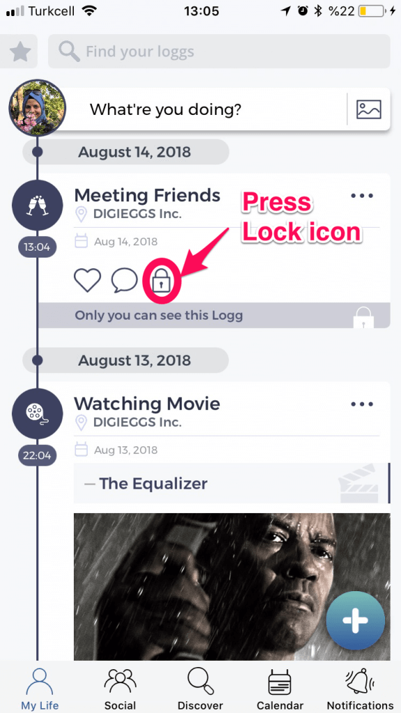 It’s very simple to convert private Logg to Social Logg, just press the lock icon.